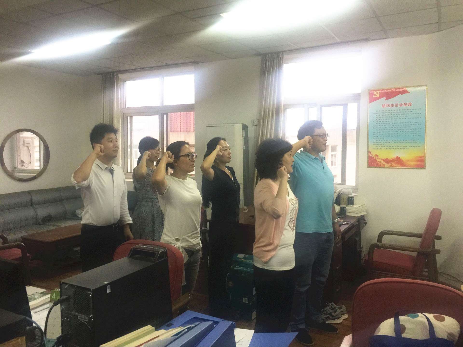 学习活动在全体党员奏唱国歌中拉开帷幕,闵茂丽同志带领全体党员重温了入党誓词;喻慧同志通报了党员到会情况和党费缴纳情况,全体党员到会,所有党员按时自觉缴纳了党费;全体党员集体诵读了党章的第二章的第16、17条;闵茂丽同志带领全体党员集中学习了《习近平的七年知情岁月》连载(一)(二)、《习近平总书记的成长之路》。此次学习活动,全体党员全面了解了习近平总书记的成长之路,坚定了全体党员自觉团结在以习近平为核心的党中央的信心。